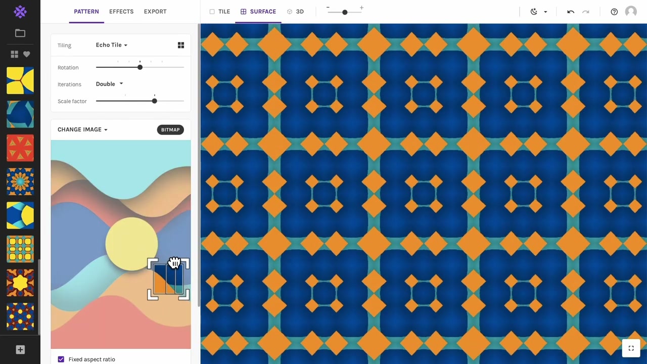 Repper takes a completely different approach. You start with a source image and select portions to repeat using geometric templates called tilings. The app includes dozens of these templates, plus effects, 3D previews, and extensive export options. You can organize and save your patterns in collections for easy management.